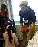 工作コーナーでは、様々な工作を子どもたちに体験して頂きました。岐阜大学様の「空気の力実験」をもとにした、工作を多く取り入れました。特に「フーフーボール」は、岐阜大学で小学生向けの講座を開く為に行った、モニターのおしごとで子どもたちが実際に行いました。職人は手先が命ですが、器用さというのは幼いころの工作など、指先を使う事により養われる能力です。このコーナーではものづくりに少しでも関心をもってもらいたいという思いから企画しました。安全面などから、刃物は一切使わないようにしていましたが、家に帰ってから、自分でも1からつくろうと思ってもらえたらいいなぁと思っています。みんな安全に楽しくものづくりをしていました。ご協力してくださいました、岐阜大学様ありがとうございました。